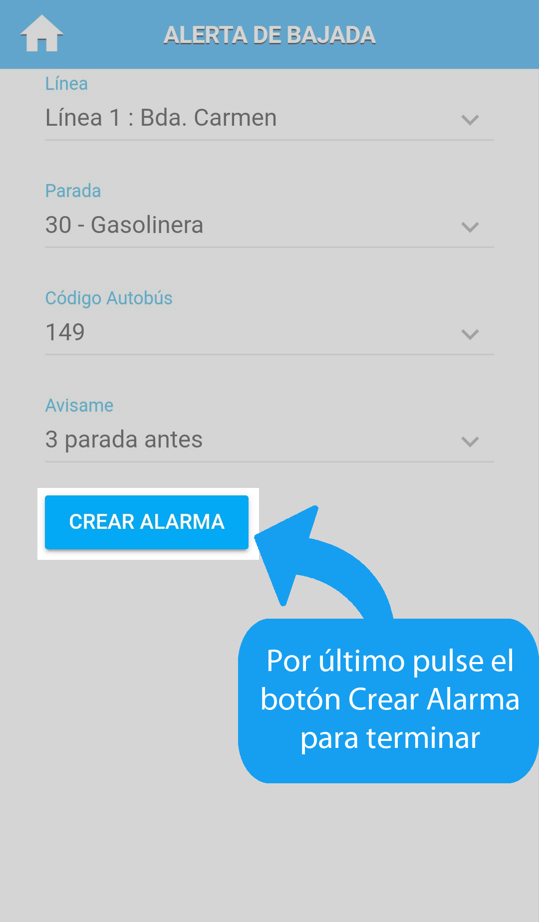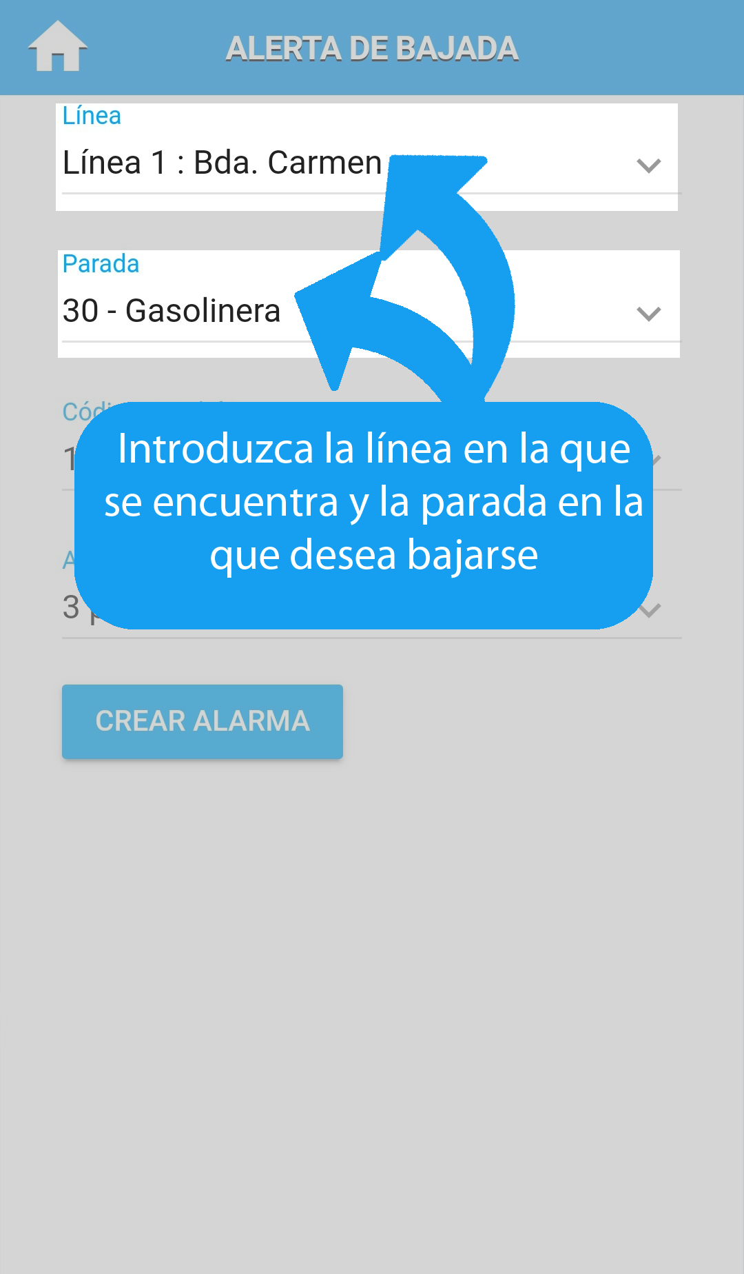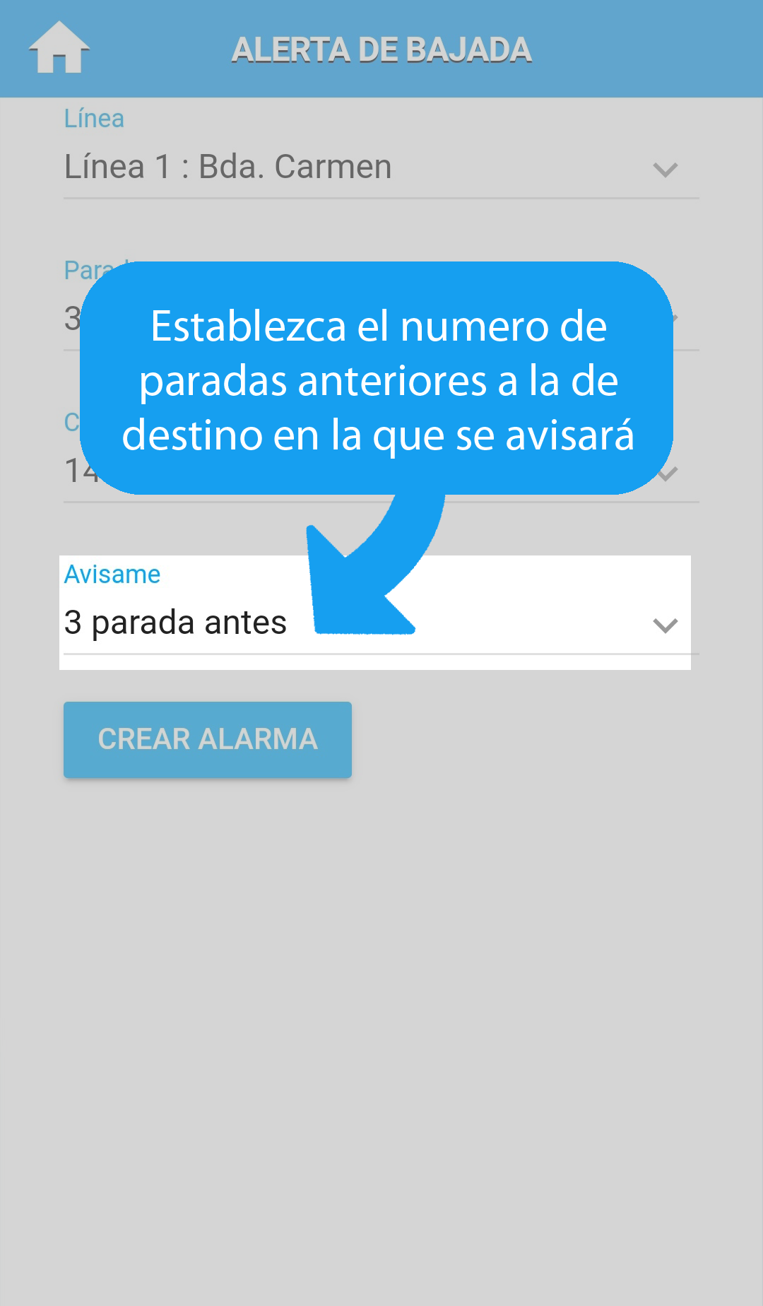Crea una alarma para saber cuando debes bajarte.
